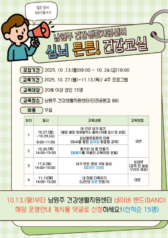 ▲ 심뇌튼튼! 건강교실 안내문 |