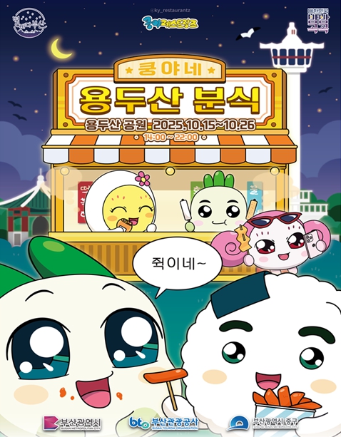 [파이낸셜경제=박영진 기자] 부산시는 부산관광공사와 오늘(15일)부터 10월 26일까지 용두산공원에서 '별바다부산 나이트 팝업 시즌3'으로 '쿵야네 용두산 분식 팝업'을 운영한다고 밝혔다.