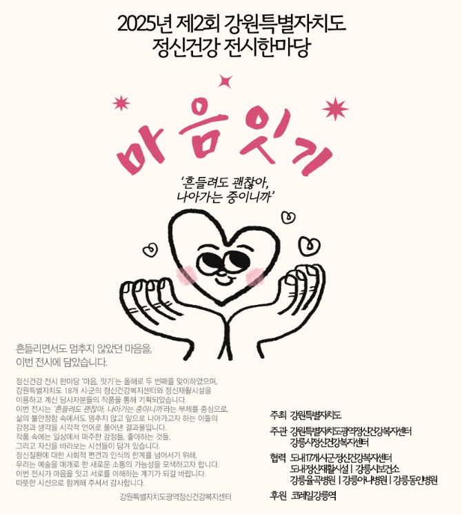 [파이낸셜경제=조성환 기자] 강릉시는 10월 13일부터 오는 19일까지 강릉역에서 '2025년 제2회 정신건강 전시한마당'을 개최한다.
