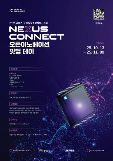 [파이낸셜경제=김영란 기자] (재)충남창조경제혁신센터와 세메스(주)는 반도체·디스플레이 장비 혁신을 이끌 유망 스타트업을 발굴·육성하기 위해 ‘2025 세메스 × 충남창조경제혁신센터 Nexus Connect 오픈이노베이션 밋업 데이’ 참여 기업을 11월 9일까지 모집한다.