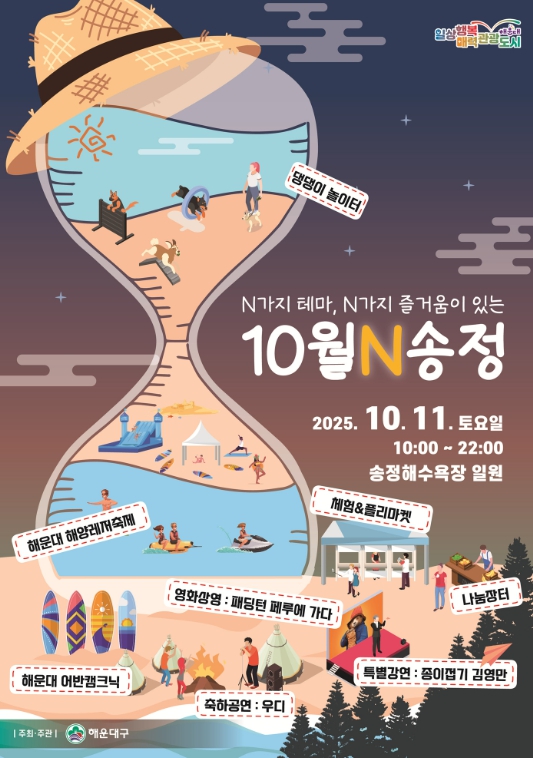 [파이낸셜경제=박영진 기자] 해운대구는 10월 11~12일, 해운대·송정해수욕장에서 ‘N가지 테마, N가지 즐거움이 있는 10월N 해운대·송정’을 개최한다.