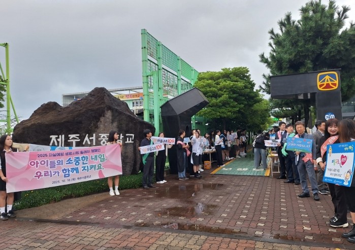 [파이낸셜경제=김영란 기자] 제주도교육청 제주서중학교는 16일 오전 8시부터 8시 30분까지 아침 등교 시간을 활용하여, 제주특별자치도교육청과 함께하는 ‘2025 자살예방 생명사랑 릴레이 캠페인’을 진행했다.