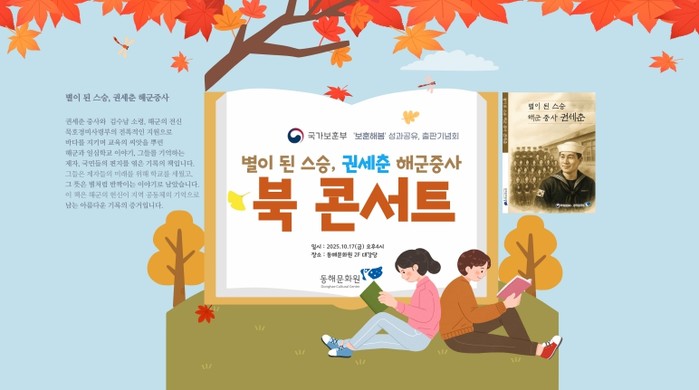 [파이낸셜경제=조성환 기자] 『별이 된 스승, 권세춘 해군중사』 출판기념 북 콘서트가 10월 17일 오후 4시, 동해문화원 대강당에서 성황리에 열렸다.