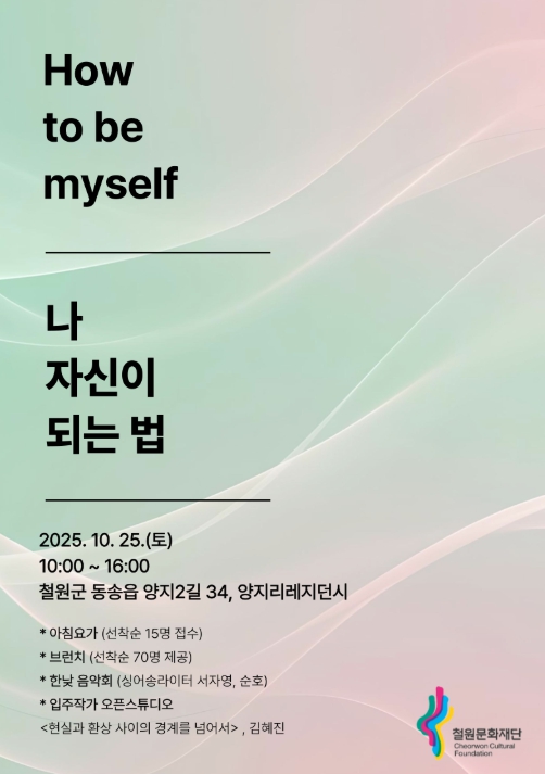 [파이낸셜경제=조성환 기자] 철원문화재단은 2025년 10월 25일 오전 10시부터 16시까지 양지리 레지던시를 개방해 웰니스 문화행사를 진행한다.