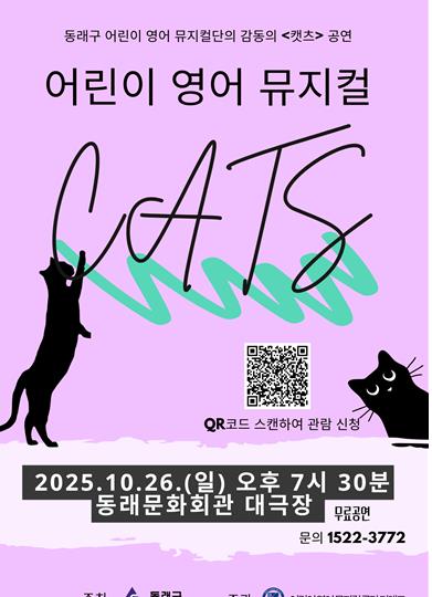 [파이낸셜경제=박영진 기자] 부산 동래구는 ‘어린이 영어 뮤지컬단’이 8개월간의 연습을 마치고 오는 10월 26일 오후 7시 30분, 동래문화회관 대극장에서 뮤지컬 캣츠(CATS) 공연을 선보인다고 밝혔다.