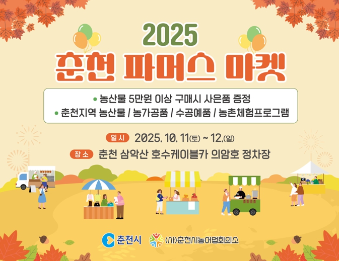 홍미순 춘천시 농업정책과장은 “가을에 어울리는 따뜻한 장터가 될 것”이라며 “농촌과 도시가 어깨를 맞대는 소통의 장을 꾸준히 이어가겠다”고 말했다.
