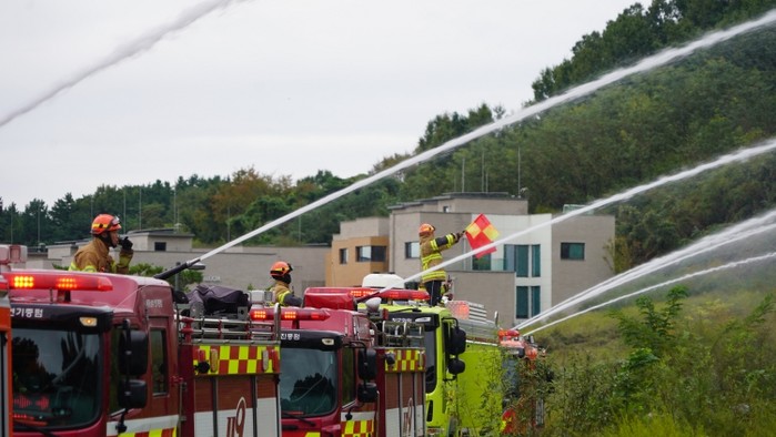 훈련 장비는 펌프차 등 소방차와 레미콘, 살수차 등 24대 차량과 드론과 이동식 수조가 투입됐으며, 세종시 긴급구조통제단 및 통합지원본부를 가동해 재난대응 체계 운영능력을 점검했다.