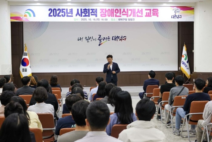 [파이낸셜경제=김영란 기자] 대전 대덕구는 16일 구청 청렴관에서 공직자 100여 명이 참석한 가운데 ‘사회적 장애 인식개선 교육’을 진행했다고 밝혔다.