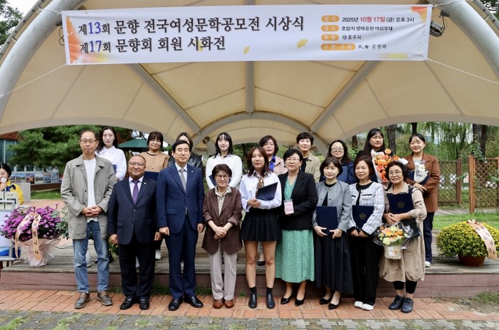 [파이낸셜경제=김기보 기자] 충주 문향회(회장 안애정)에서 주최하는 ‘제13회 문향전국여성문학공모전 시상식과 제17회 문향회 시화전 개막식’이 17일 호암지 생태공원 야외무대에서 열렸다.