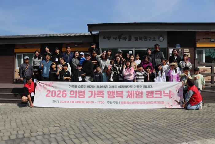 [파이낸셜경제=김예빈 기자] 의령청소년문화의집은 지난달 28일 관내 초·중학생 12가족(총 42명)을 대상으로 한 '2026 의령 가족 행복 체험 캠크닉(봄)'을 성황리에 마쳤다고 밝혔다.