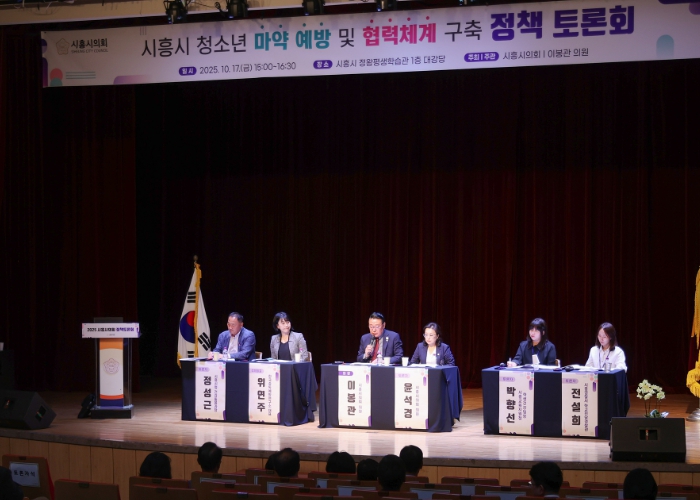 [파이낸셜경제=김기보 기자] 경기 시흥시의회가 10월 17일 정왕평생학습관 1층 대강당에서 ‘시흥시 청소년 마약 예방 및 협력체계 구축’을 주제로 정책토론회를 개최했다.